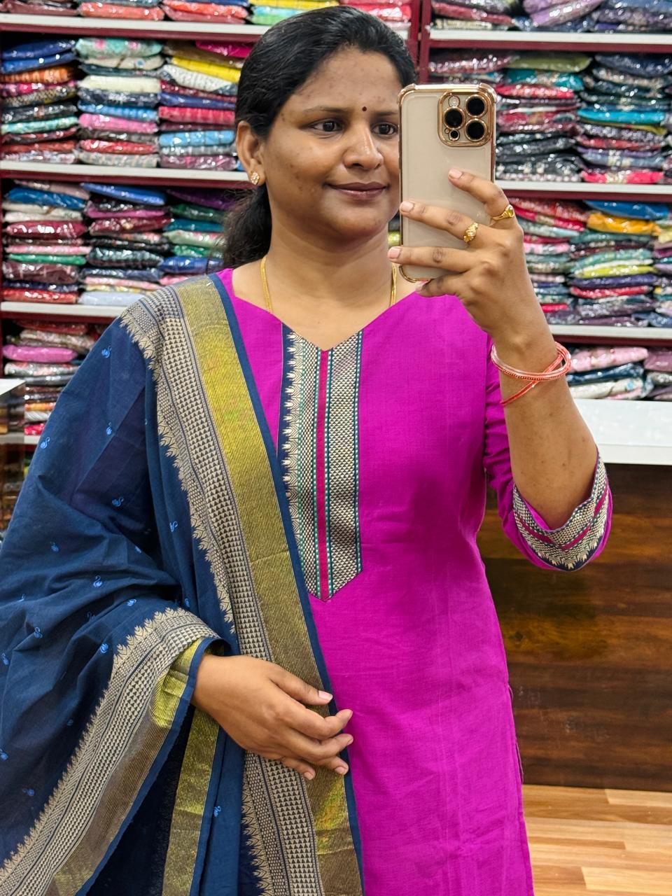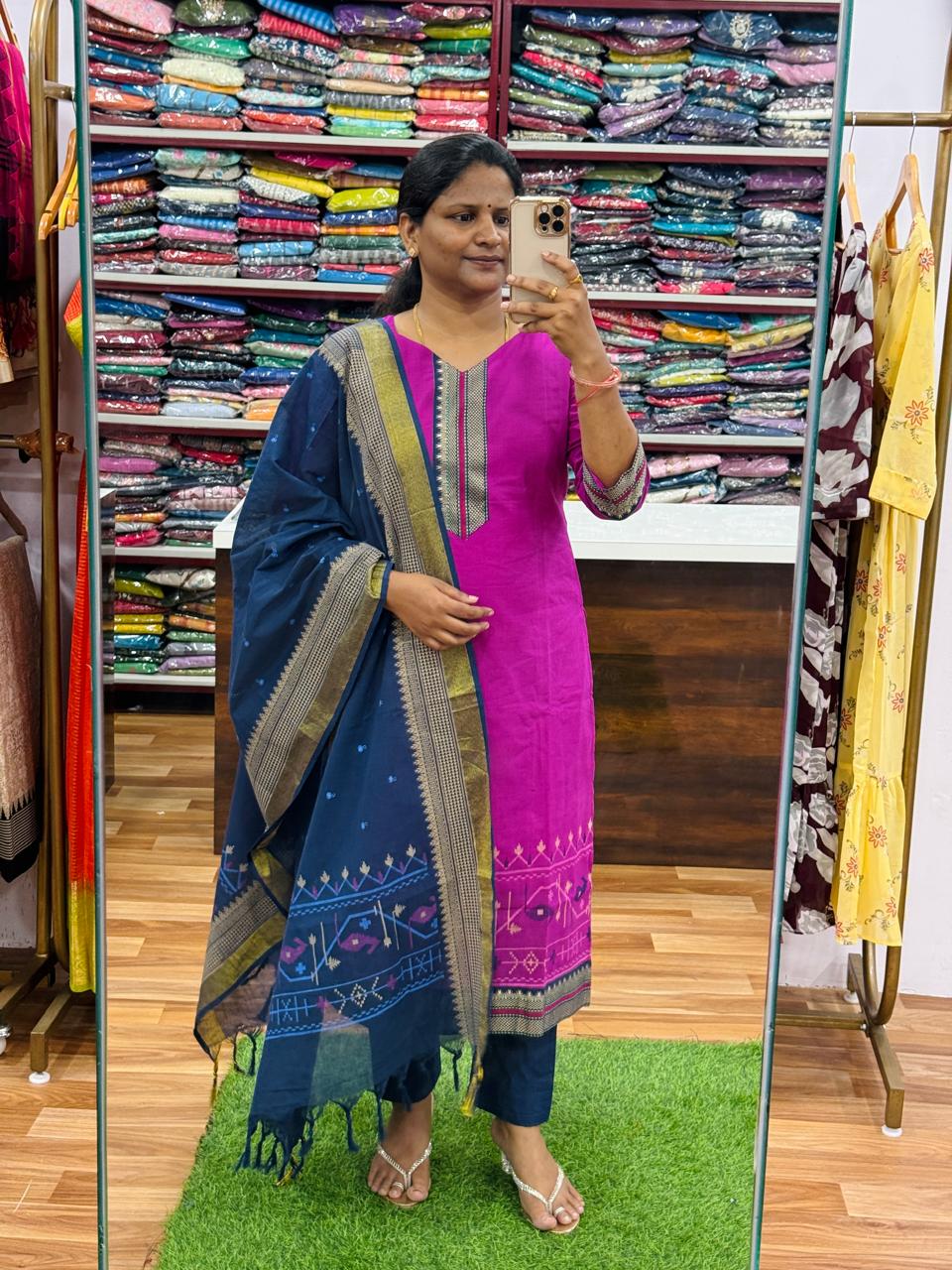 – Beautiful Dark Pink Color Premium Quality Cotton 3 Piece Kurta Set