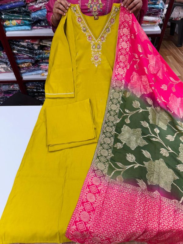 – Beautiful Green Color Premium Quality 3 Piece Kurta Set