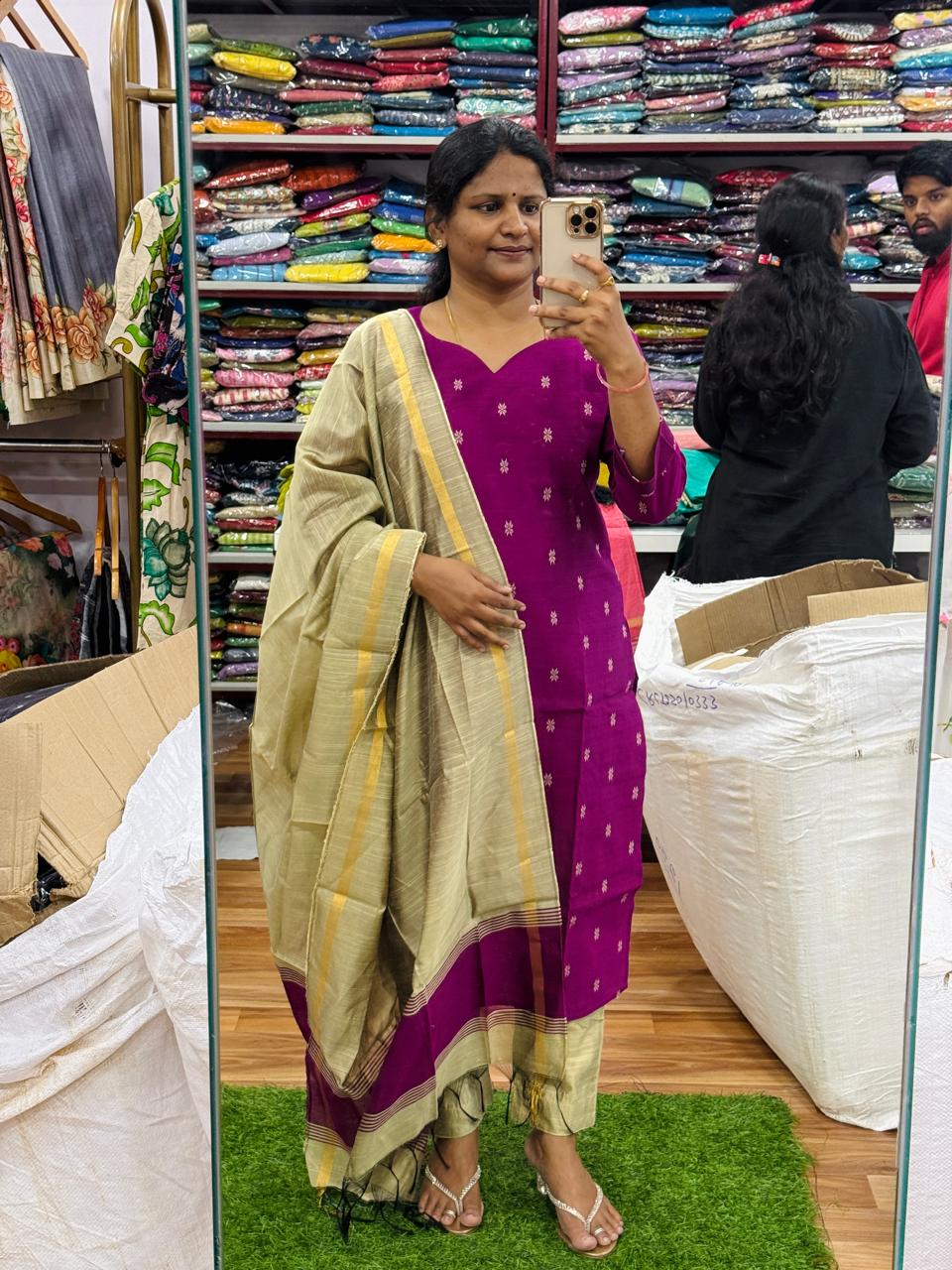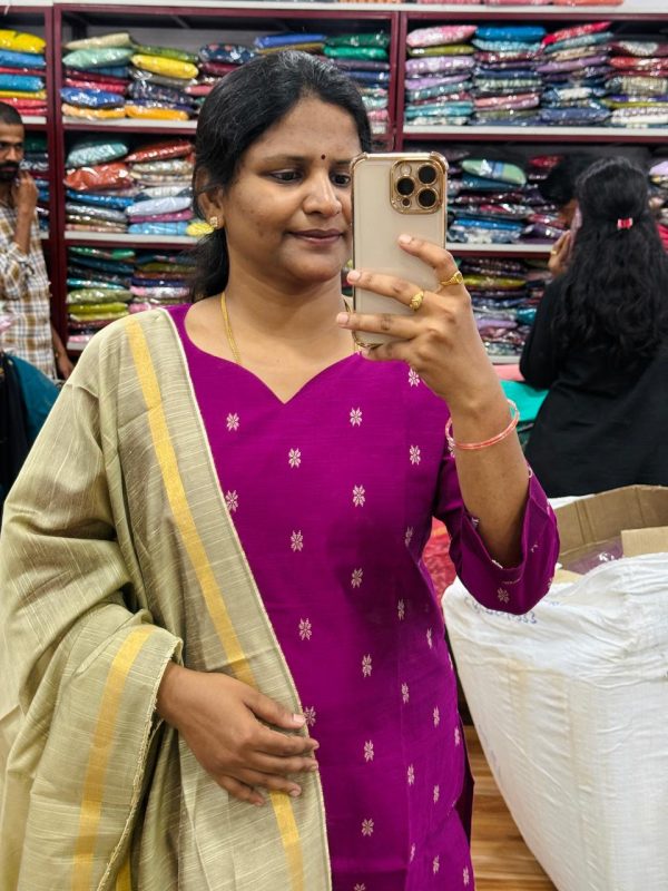 – Beautiful Rani Pink Color 3 Piece Kurta Set