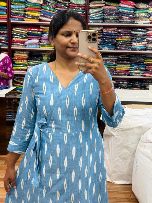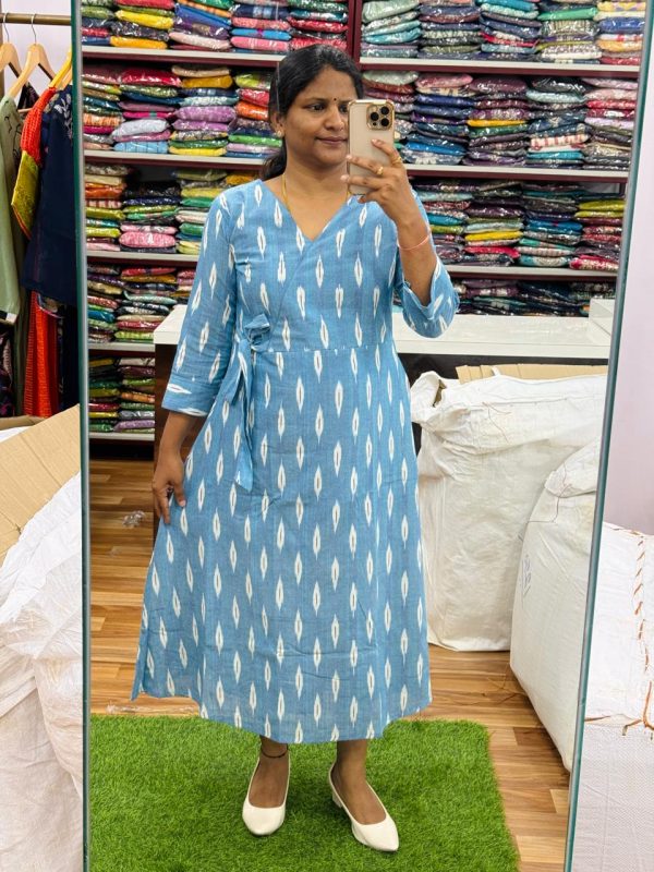 – Beautiful Leight Blue Color Ikkat Cotton Ankle Length Gown