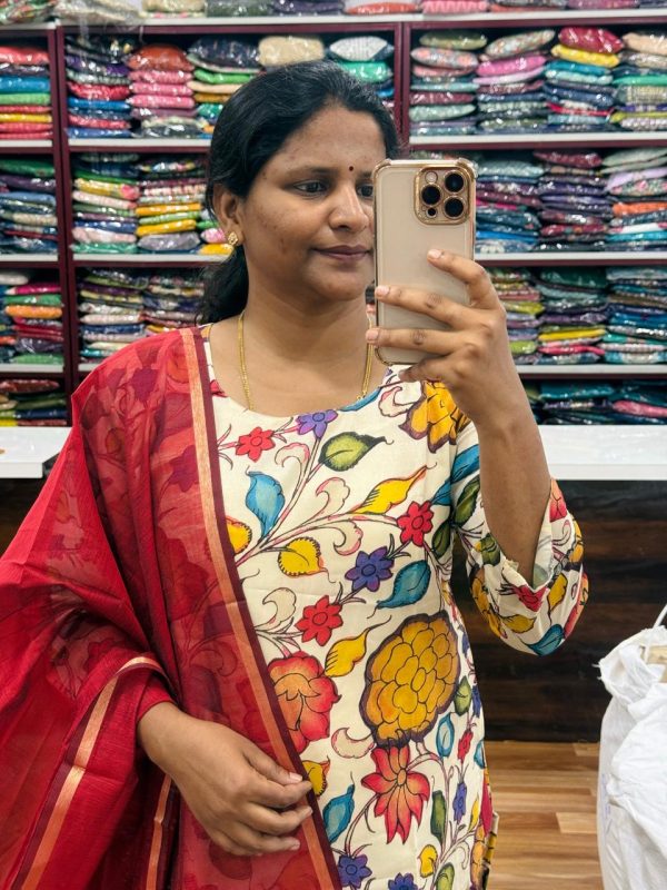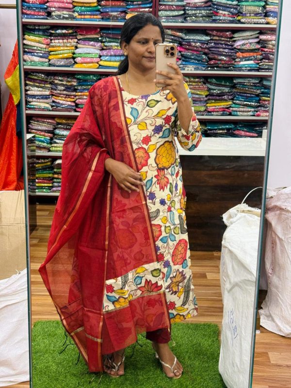 – Beautiful Half White Color Kalamkari 3 Piece Kurta Set
