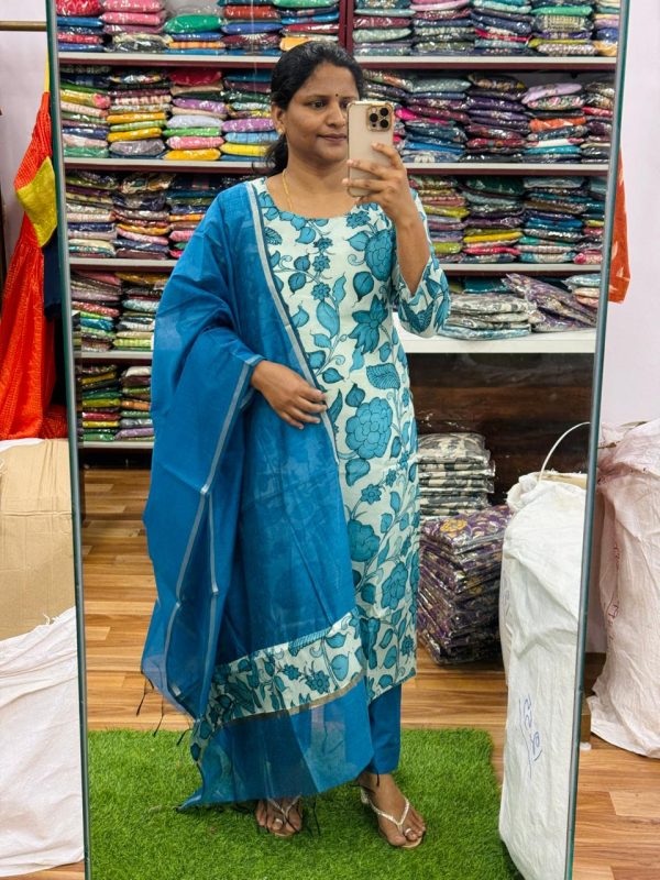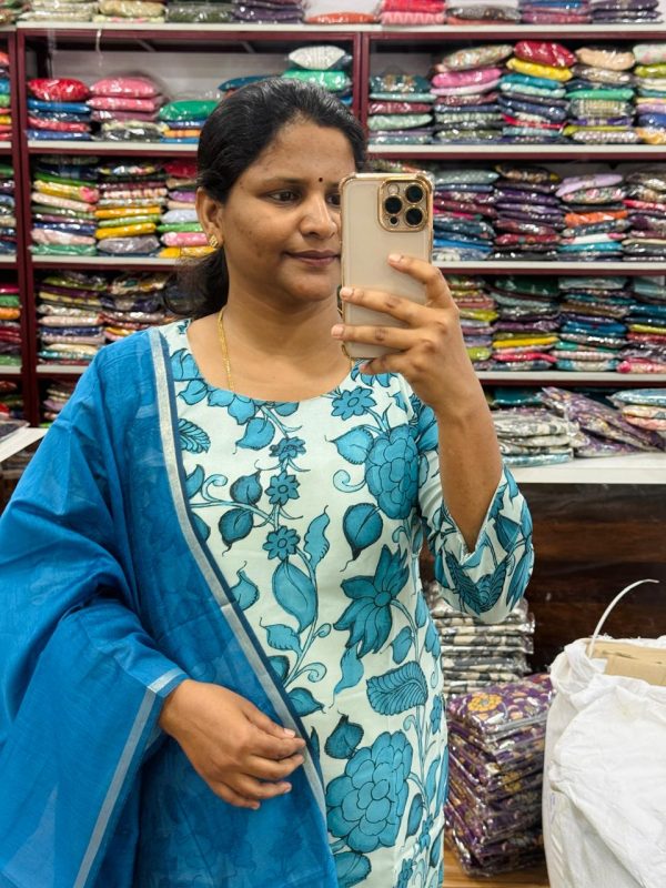 – Beautiful Blue Color Kalamkari 3 Piece Kurta Set
