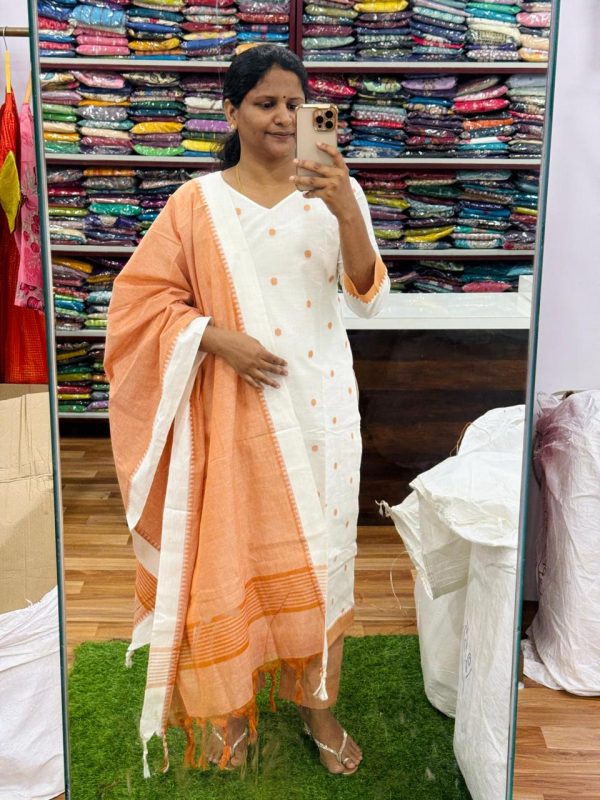 – Beautiful White Color Premium Quality Cotton 3 Piece Kurta Set