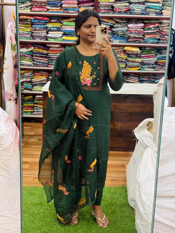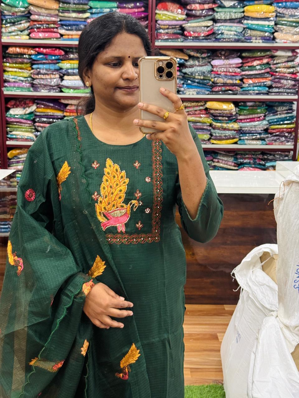 – Beautiful Dark Green Color Kota Cotton 3 Piece Set