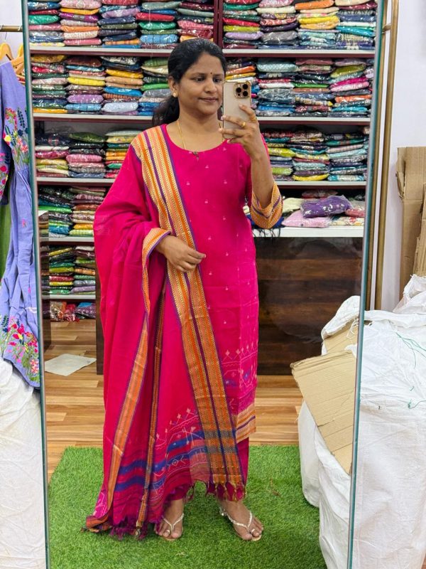 – Beautiful Pink Color Premium Quality Narayanpet Varahi Pattu 3 Piece Kurta Set