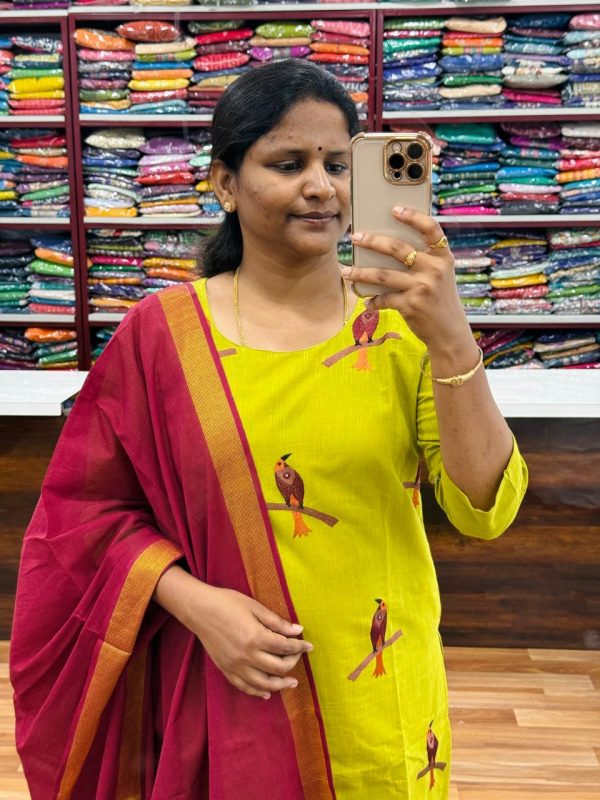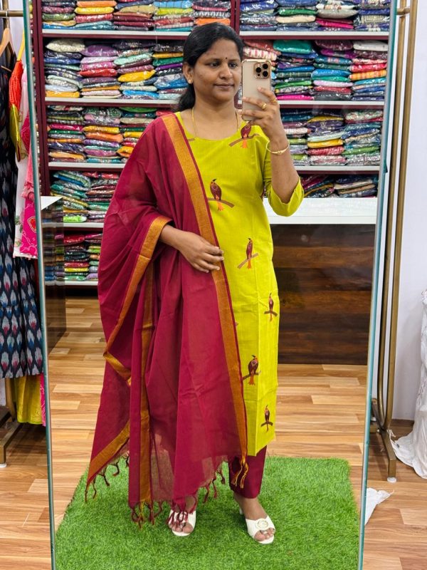 – Beautiful Green Color Premium Quality Cotton 3 Piece Kurta Set