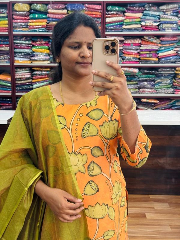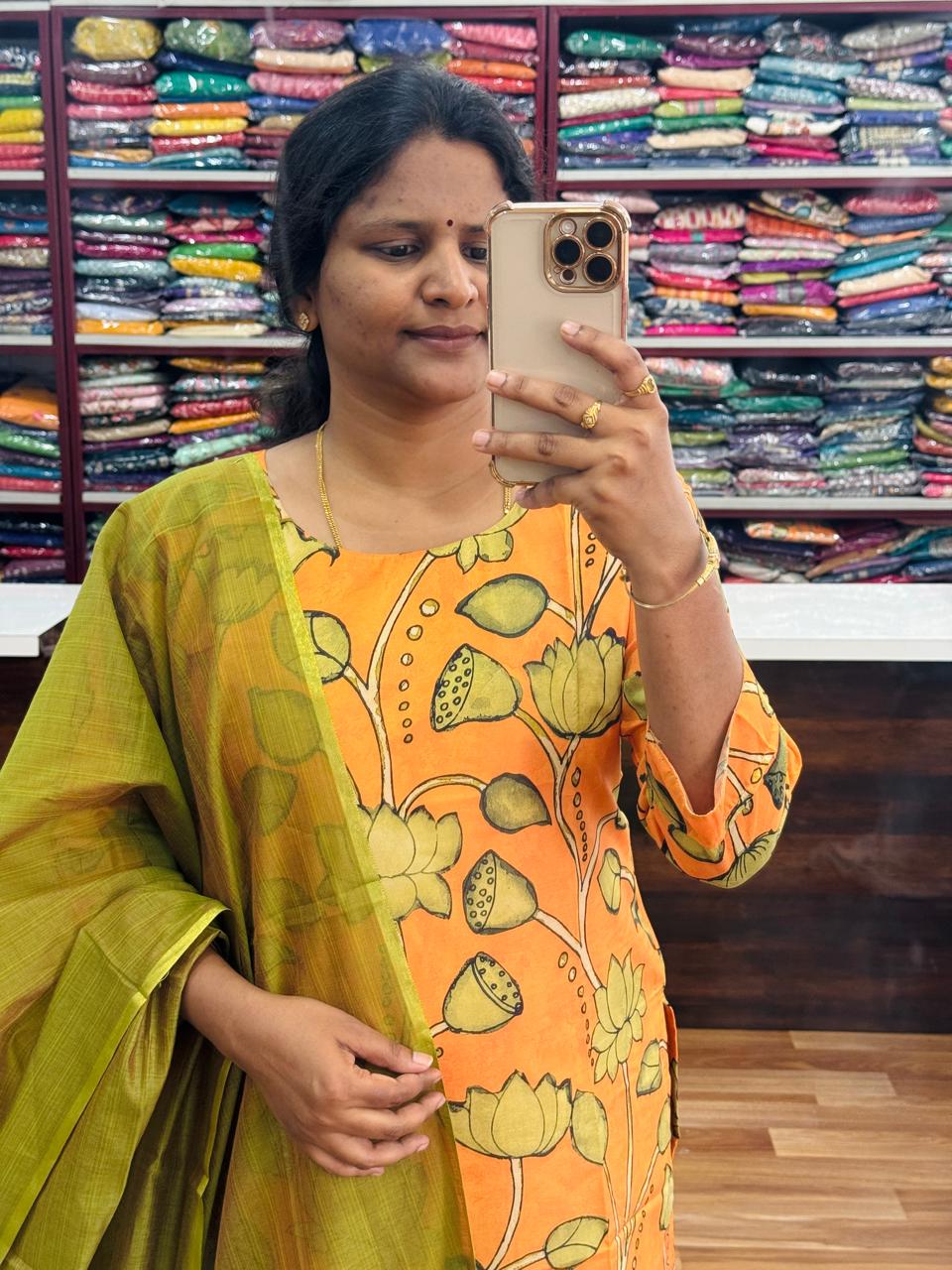 – Beautiful Orange Color Kalamkari 3 Piece Kurta Set