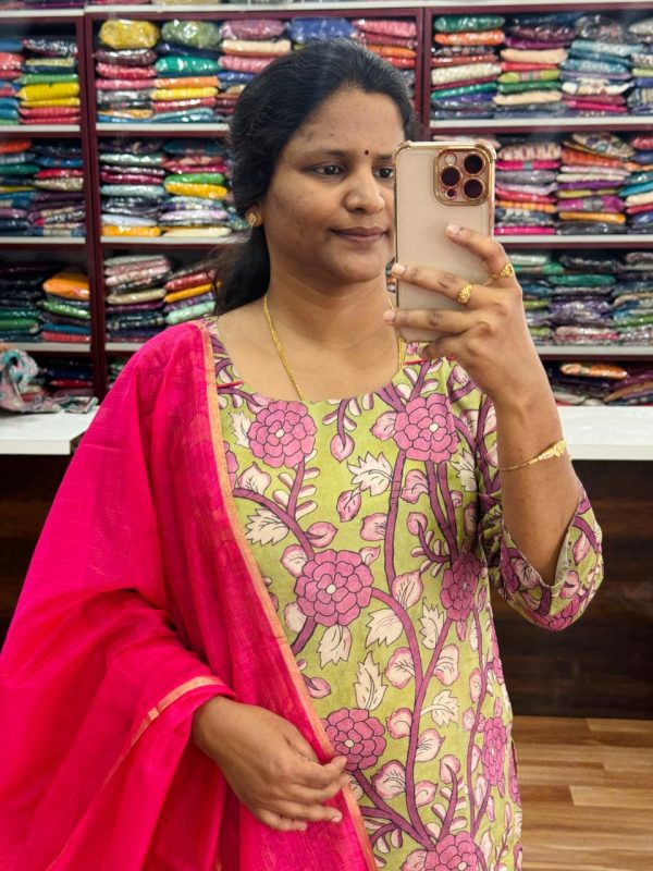 – Beautiful Green Color Kalamkari 3 Piece Kurta Set