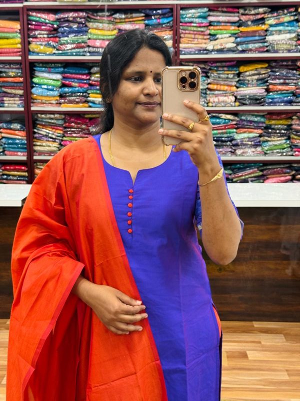 – Beautiful Dark Blue Color Premium Quality Ikkat Pattu 3 Piece Kurta Set