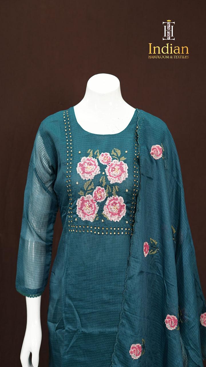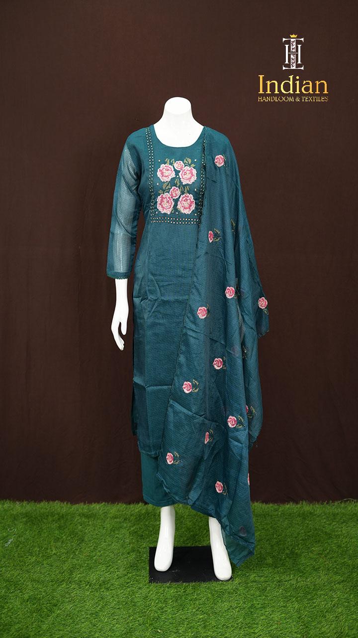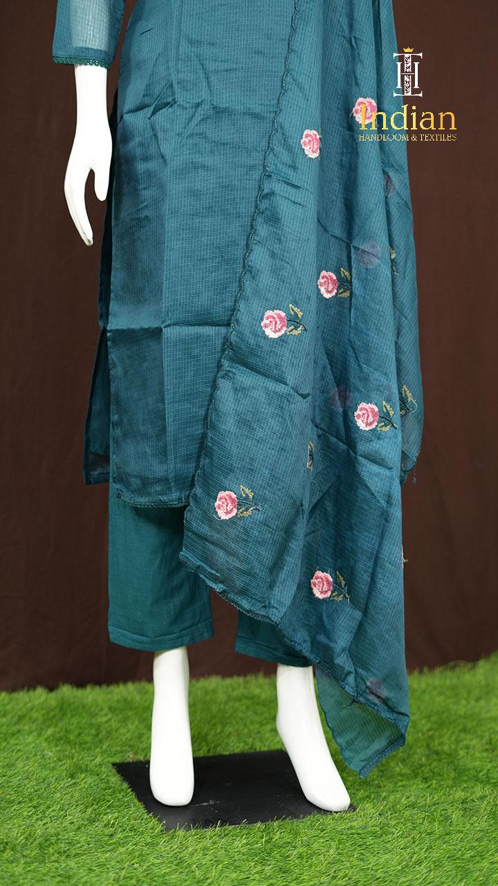 – Beautiful Dark Sea Green Color Kota Cotton 3 Piece Set