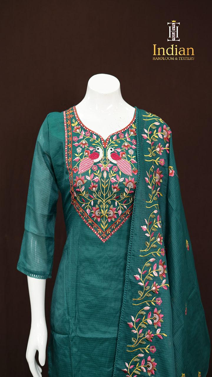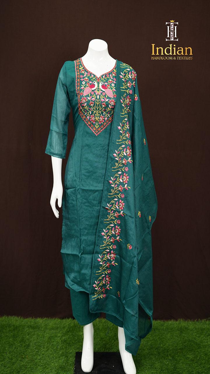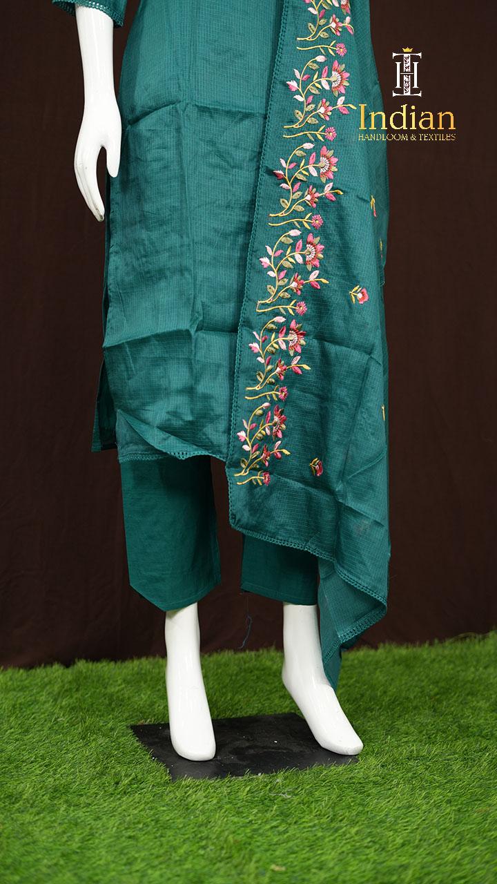 – Beautiful Dark Sea Green Color Kota Cotton 3 Piece Set