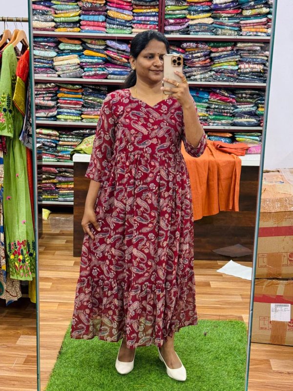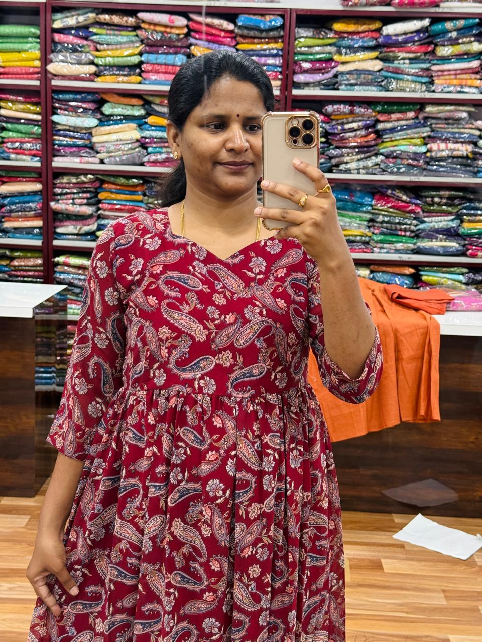 – Beautiful Maroon Color Georgette Ankle Length Gown