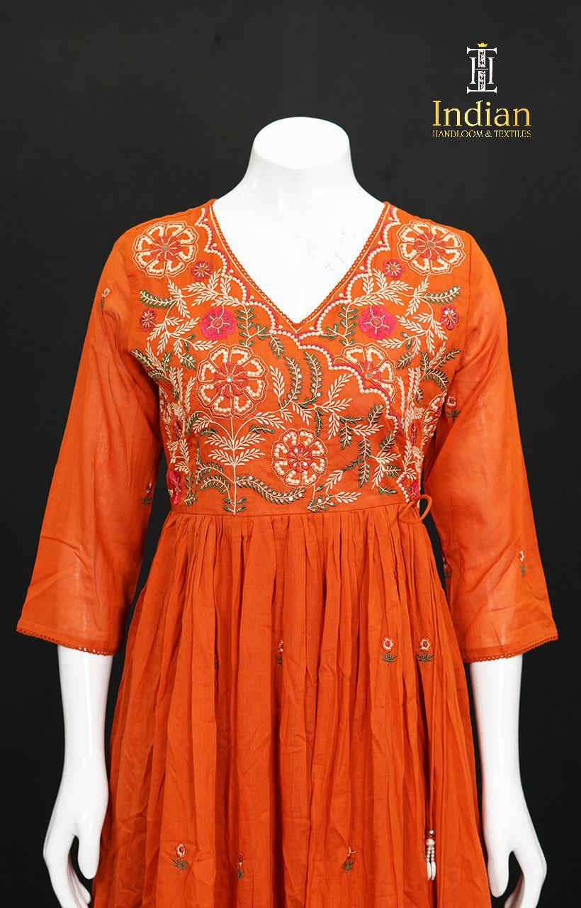– Frock Model Top with Cotton Lining And Embroidery At Yolk Part