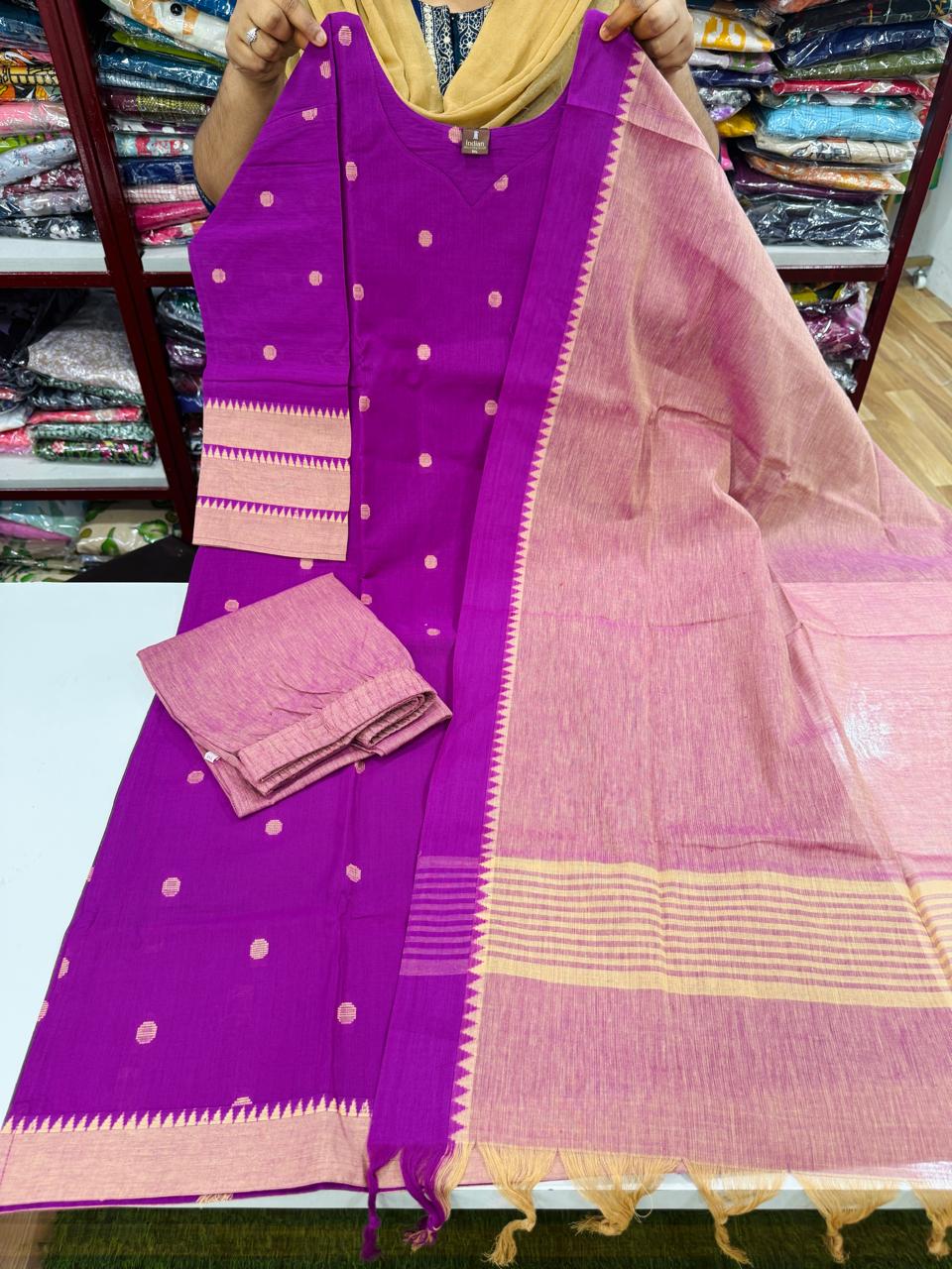 – Beautiful Pink And Cream Color Cotton Plus Size 3 Piece Set