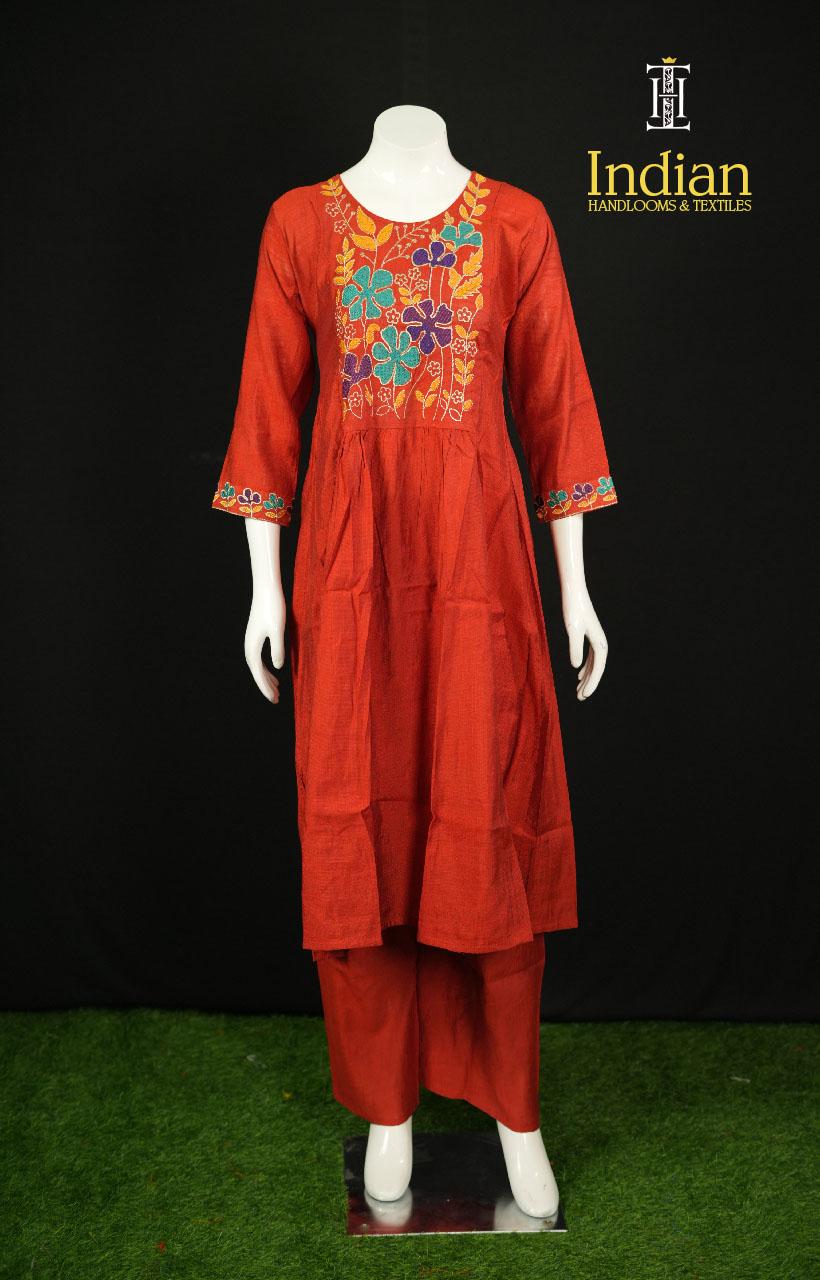 – Premium Quality Rust Orange Color 2 Piece Kurta Set