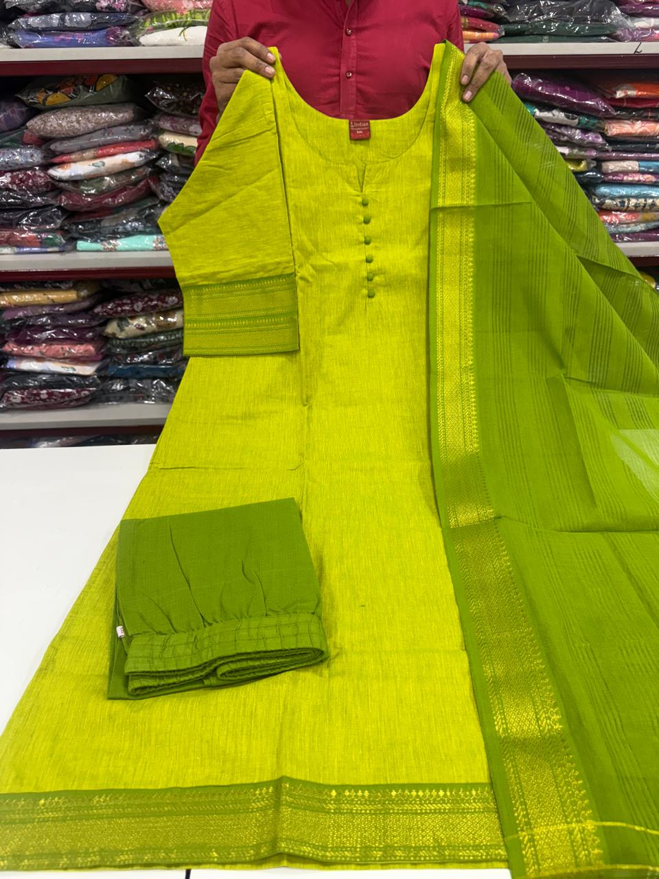 – Beautiful Green Color Cotton Plus Size 3 Piece Set