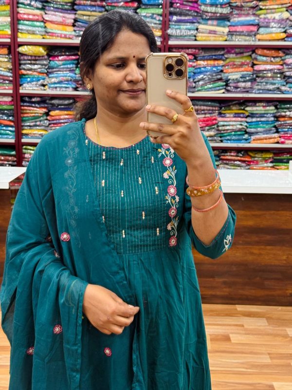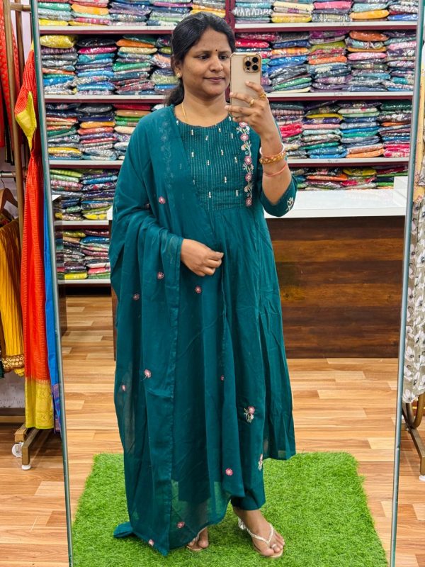 – Beautiful Peacock Blue Color 3 Piece Kurta Set