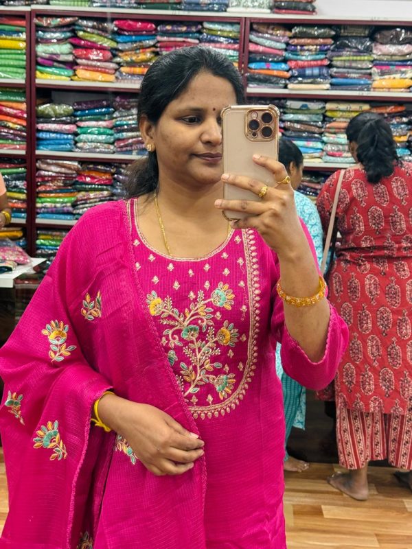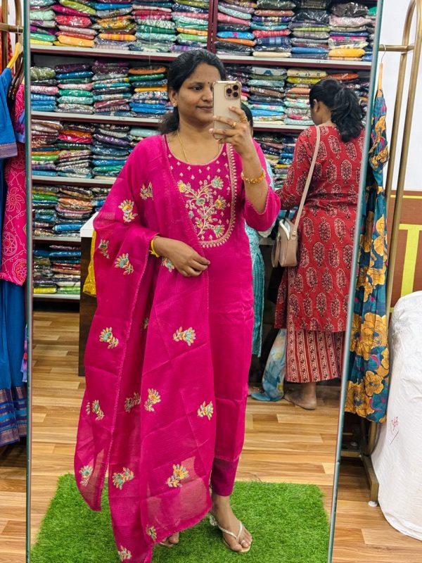 – Beautiful Rani Pink Color Kota Cotton 3 Piece Set